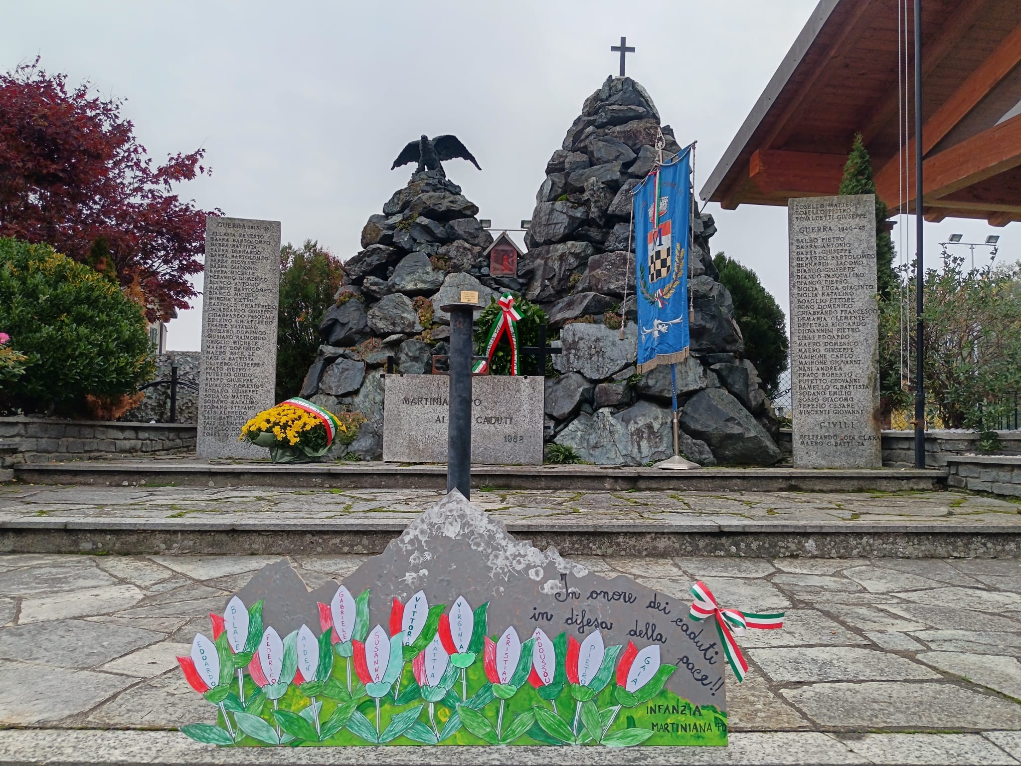 Le insegnanti e i bambini della scuola dell'infanzia di Martiniana Po hanno ricordato con il gruppo alpini sezione di Martiniana Po la ricorrenza del 4 novembre dell'Unità nazionale e delle forze Armate .E' stato creato dai bambini un pannello in legno e consegnato al capogruppo in occasione della celebrazione della Santa Messa. Molto toccante è stata la testimonianza di un alpino che ha ricordato la sua infanzia durante la seconda guerra Mondiale e subito dopo la fine della guerra . C'E' SEMPRE PIU' BISOGNO DI PACE SOPRATTUTTO IN QUESTO MOMENTO STORICO DOVE IN TANTE PARTI DEL MONDO ANCORA SI MUORE PER LA GUERRA.